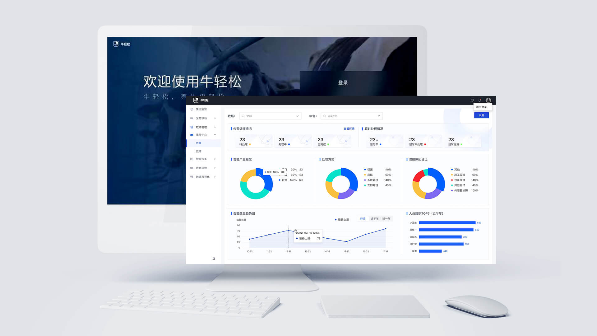 牛輕松對牧場的智能風機系統(tǒng)、噴淋系統(tǒng)、視頻監(jiān)控系統(tǒng)、智能照明系統(tǒng)、能源監(jiān)測系統(tǒng)、環(huán)境監(jiān)測系統(tǒng)、工單系統(tǒng)等進行統(tǒng)一的管理與聯(lián)動配置。產品的應用實現(xiàn)牧場內所有設備的一鍵全連、協(xié)同聯(lián)動及可視化管理,輔助牧場能夠綠色的、高效的、可持續(xù)盈利的長足發(fā)展。